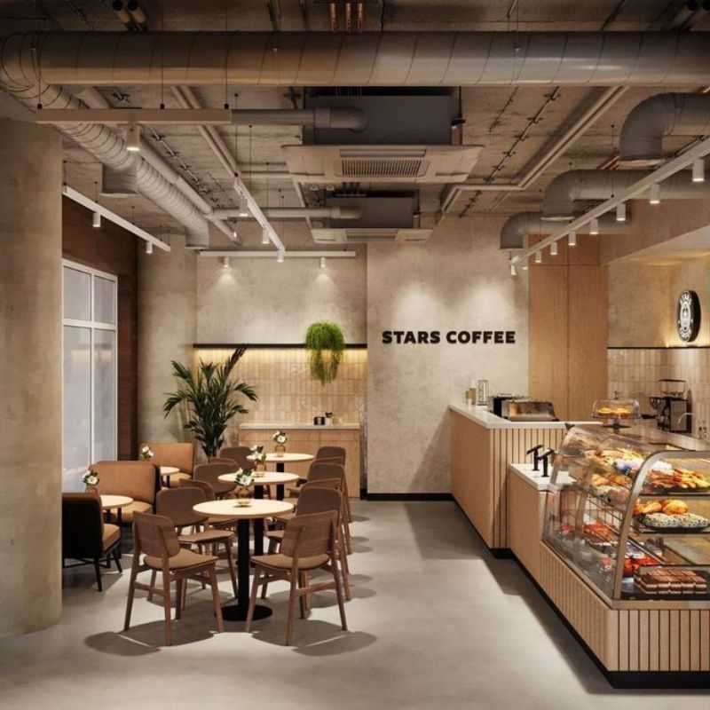Ánh sáng tự nhiên đóng vai trò quan trọng trong việc tạo nên không gian quán cafe thoáng đãng, thân thiện và gần gũi. Nguồn sáng này giúp khách hàng cảm thấy thư giãn, dễ chịu hơn, đồng thời góp phần làm nổi bật màu sắc nội thất một cách chân thực.