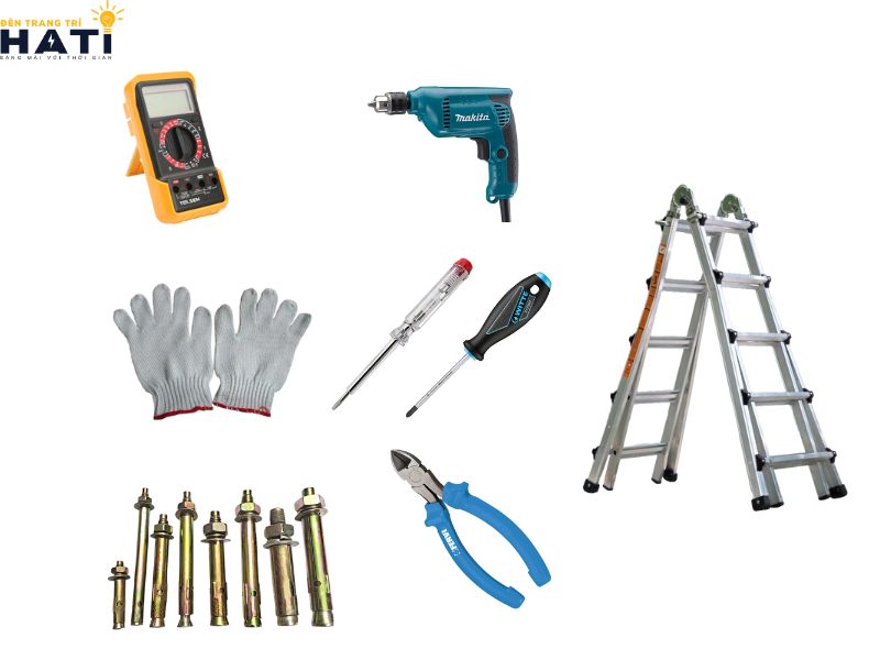 Dưới đây là danh sách dụng cụ cần chuẩn bị trước khi lắp đèn chùm pha lê: