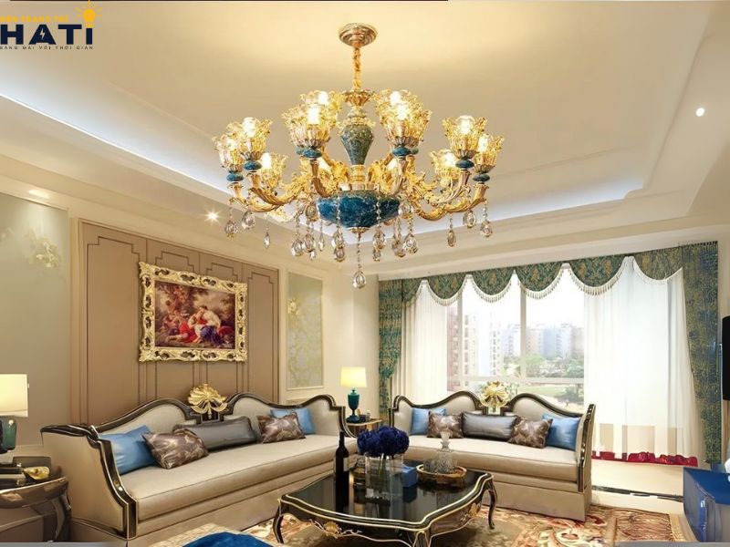 Tâm điểm: Đèn chùm thường được đặt ở trung tâm của không gian như phòng khách, phòng ăn để tạo điểm nhấn.
