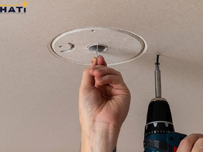Bước 2: Gắn đế đèn chắc chắn vào trần