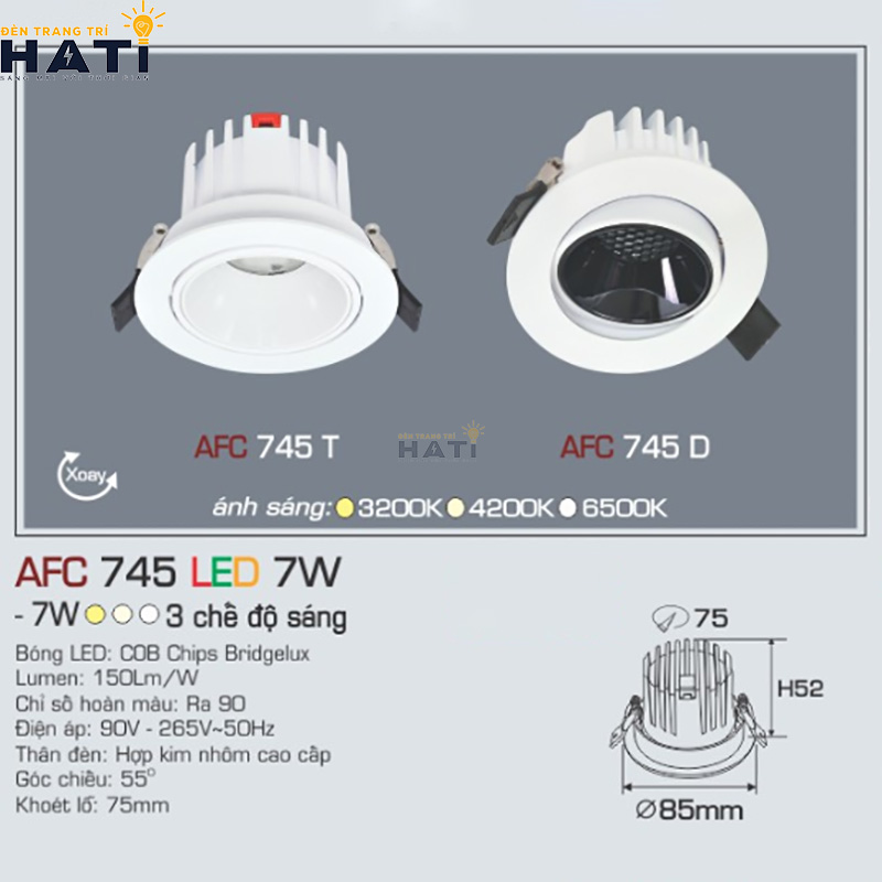 Đèn âm trần Anfaco AFC 745 màu trắng - đen 7w - 12w là lựa chọn tuyệt vời cho những ai muốn tạo điểm nhấn ấn tượng trong không gian. Liên hệ ngay với Đèn Trang Trí Hati qua hotline 0901 81 86 89 để được tư vấn chi tiết và chọn lựa sản phẩm phù hợp nhất!