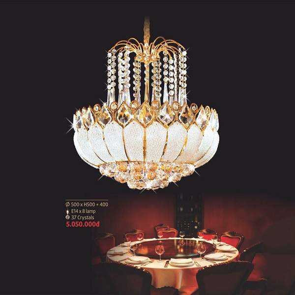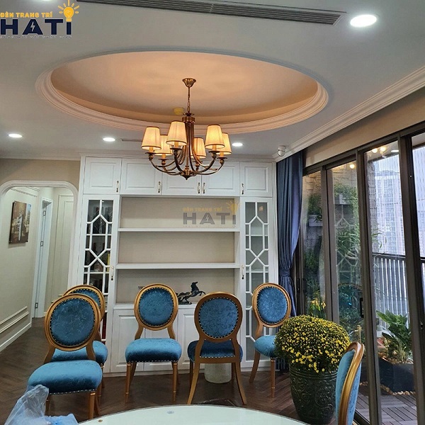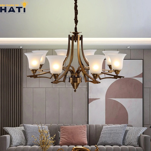 Lựa chọn kích thước đèn phù hợp với diện tích của căn phòng, tránh chọn mua mẫu đèn chùm quá cồng kềnh vì có thể phá vỡ sự cân bằng trong không gian và có thể gây ra rủi ro nghiêm trọng trong quá trình sử dụng.