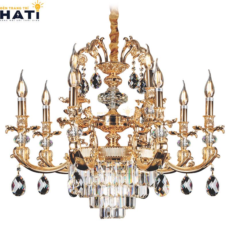 Mẫu đèn chùm cổ điển bằng pha lê hình chân nến.
