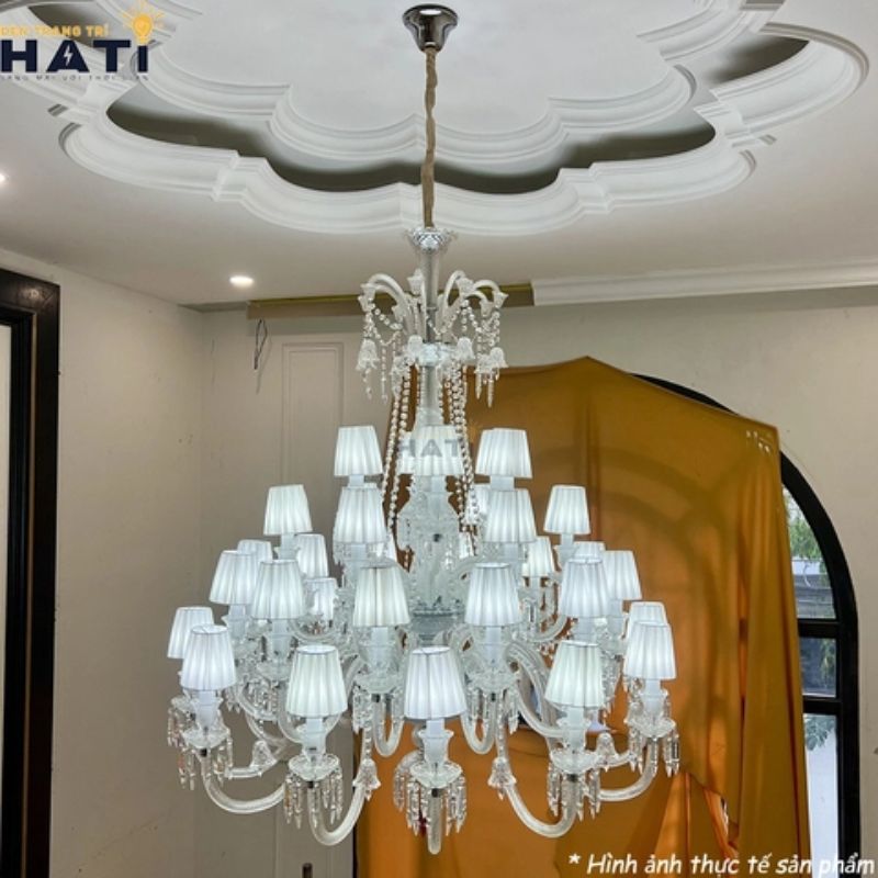 Đèn chùm pha lê Madi 36 bóng - Đèn chùm pha lê thông tầng màu trắng tinh tế
