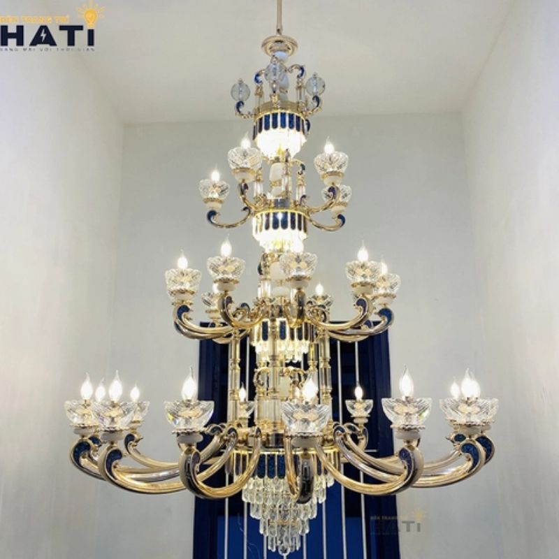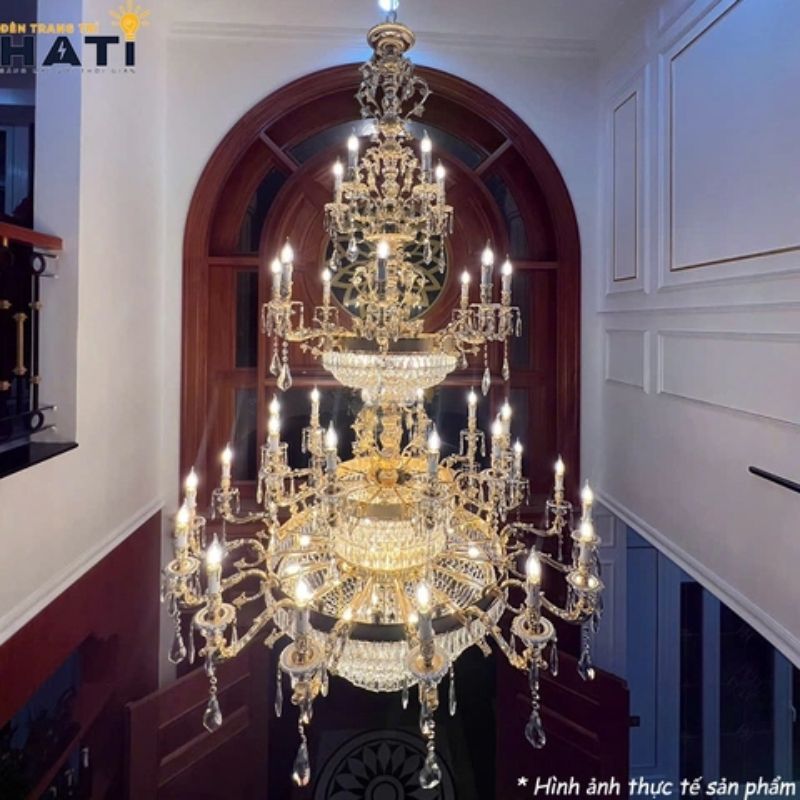 Đặc biệt, sự kết hợp giữa đồng và pha lê không chỉ giúp đèn thêm phần bắt mắt mà còn đảm bảo độ bền cao, giữ được vẻ đẹp lâu dài theo thời gian. Đây chắc chắn là mẫu đèn chùm pha lê thông tầng bạn không nên bỏ lỡ.