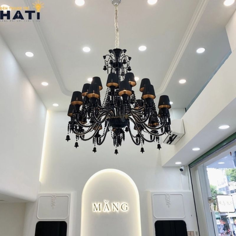 Đèn chùm pha lê Hydra 20 bóng - Đèn chùm pha lê thông tầng màu đen huyền bí
