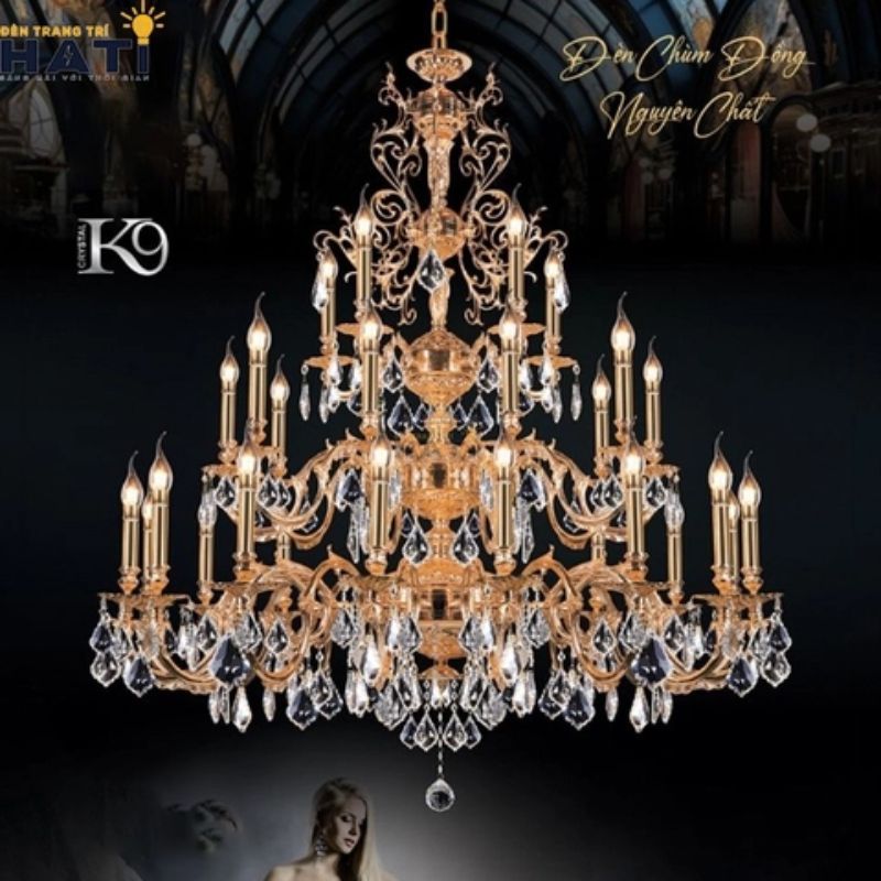 Đèn chùm pha lê đồng nguyên chất Pyrem 31 bóng - Đèn chùm pha lê thông tầng sang trọng