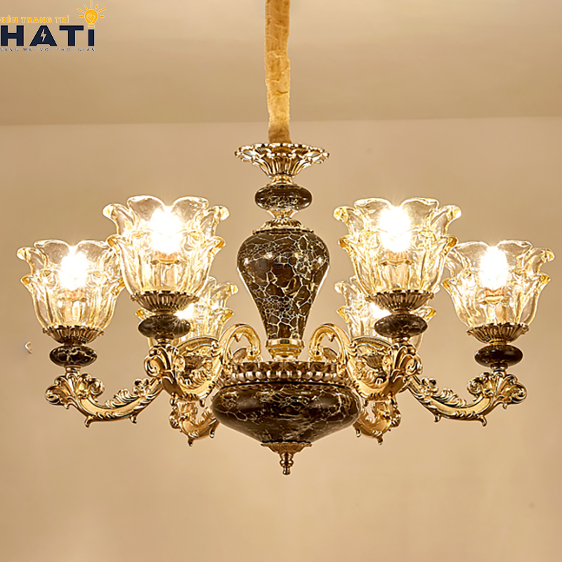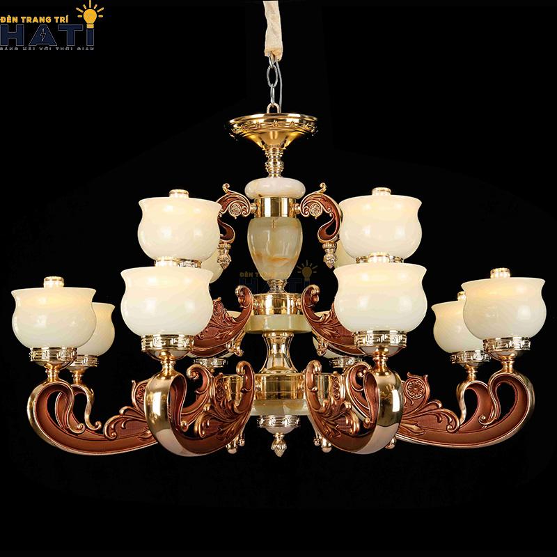 Đèn chùm phòng thờ tân cổ điển bằng đồng và đá.