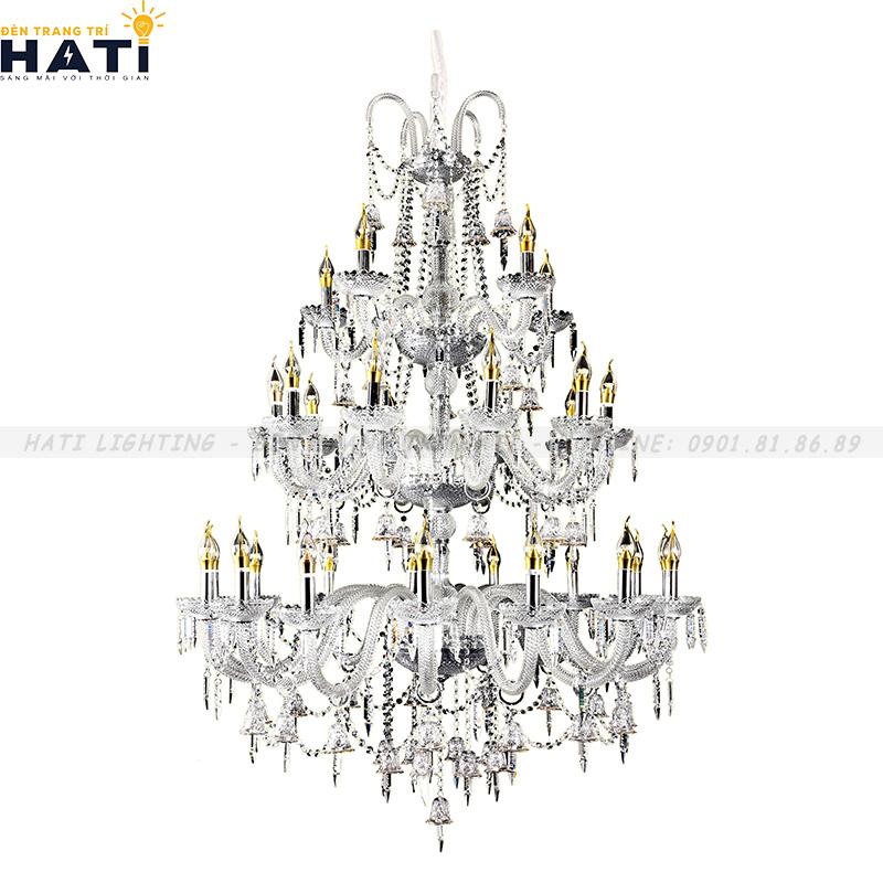 Đèn chùm phòng thờ bằng thủy tinh 3 tầng.