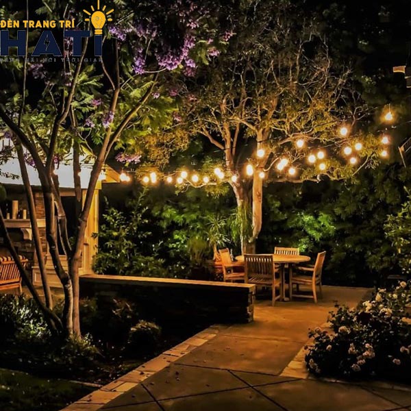 Đèn quấn cây thả dài xuống vô cùng đẹp