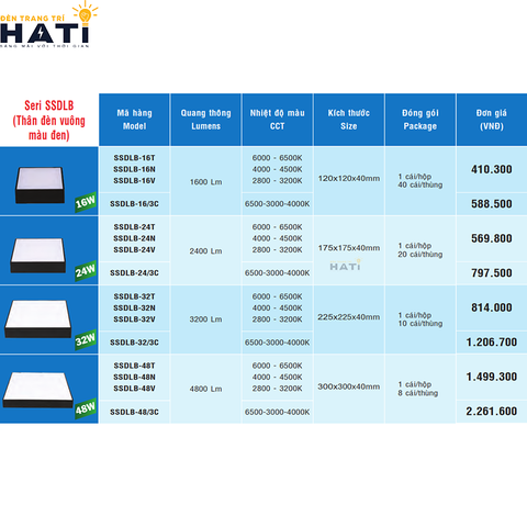 16w: Dài 120mm, Rộng 120mm, Cao 40mm |