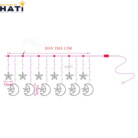 Dây ngang 3m - Thả trăng sao 12*16cm(Dây dài 80cm) - Thả sao nhỏ đường kính 9cm(Dây dài 46cm) |