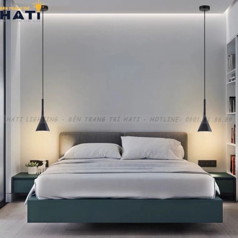 Đèn thả đầu giường thường là những mẫu đèn thả đơn được treo hai bên đầu giường, tạo nên sự cân đối và hài hòa cho không gian phòng ngủ. Các mẫu đèn thả đầu giường không chỉ đóng vai trò chiếu sáng mà còn là điểm nhấn trang trí, tạo cảm giác ấm cúng và thư giãn.