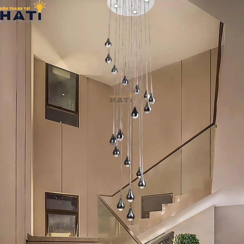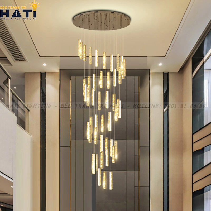 Đèn thả thông tầng hiện đại là loại đèn thả được thiết kế đặc biệt để lắp đặt trong các không gian có chiều cao trần lớn, như cầu thang, sảnh hay các khu vực thông tầng. Với thiết kế đa dạng và phong phú, đèn thả thông tầng hiện đại không chỉ giúp chiếu sáng mà còn tạo nên điểm nhấn thẩm mỹ, góp phần nâng tầm không gian sống.