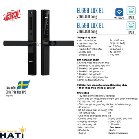 Mở khóa bằng App Wifi, Vân tay, Mật khẩu, Thẻ từ, Chìa cơ |