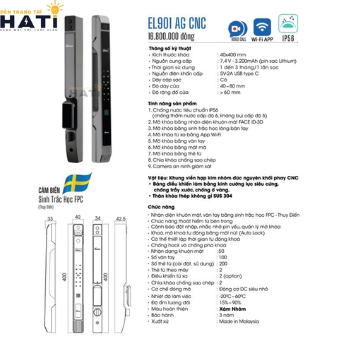 Mở khóa bằng App Wifi, Vân tay, Mật khẩu, Thẻ từ, Chìa cơ |
