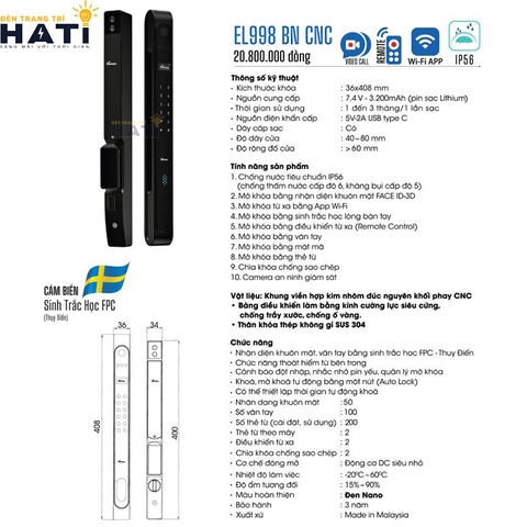 • Nhận diện khuôn mặt, vân tay bằng sinh trắc học FPC-Thụy Điển • Chức năng thoát hiểm từ bên trong • Cảnh báo đột nhập, nhắc nhở pin yếu, quản lý mở khoá •Vô hiệu hóa thẻ bị mất |