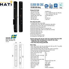 Khung viền hợp kim nhôm đúc nguyên khối phay CNC. Bảng điều khiển làm bằng kính cường lực siêu cứng, chống trầy xước, chống ố vàng. Thân khóa thép không gỉ SUS 304 |