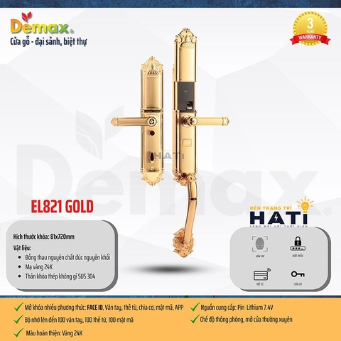 • Hợp kim kẽm, mạ vàng 24K/,mạ đồng vàng • Thân khoá thép không gỉ SUS 304 |