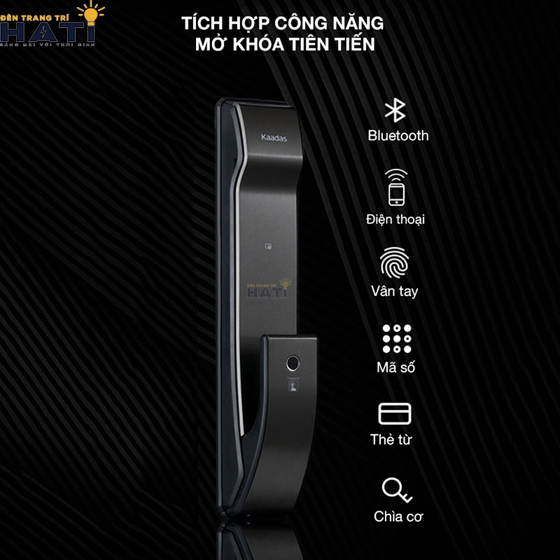 Ngoài tính năng mở khóa bằng vân tay, Kaadas còn tích hợp thêm nhiều phương thức mở khóa khác như mã số, thẻ từ, khóa cơ và điều khiển từ xa qua ứng dụng di động. Điều này mang đến sự linh hoạt và tiện lợi cho người dùng, đặc biệt là trong các tình huống khẩn cấp.