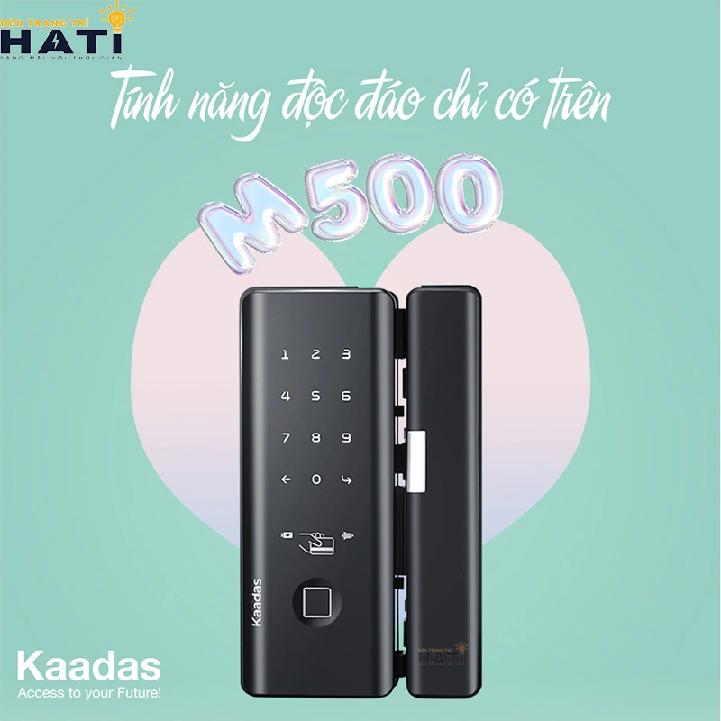 Kaadas m500 là dòng khóa vân tay chuyên dụng cho cửa kính. Với thiết kế hiện đại, sản phẩm này không chỉ mang lại sự an toàn mà còn giúp cửa kính trông sang trọng hơn. Khóa vân tay m500 tích hợp các phương thức mở khóa đa dạng như vân tay, mã số, thẻ từ, và điều khiển từ xa.