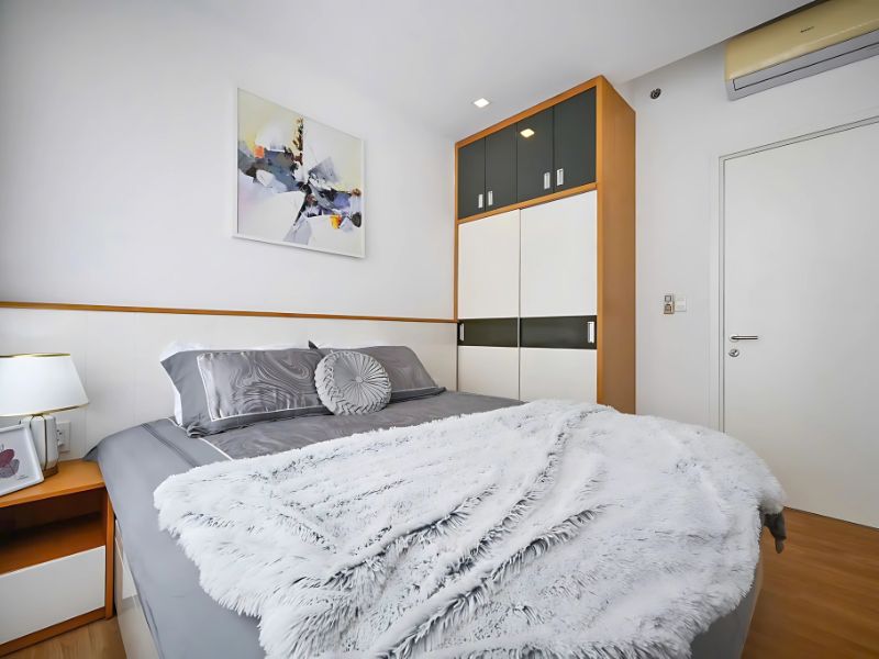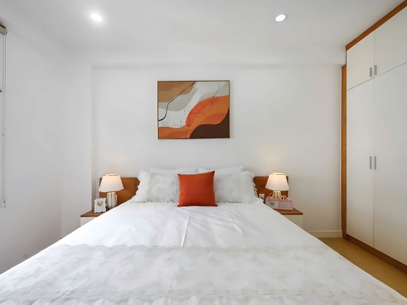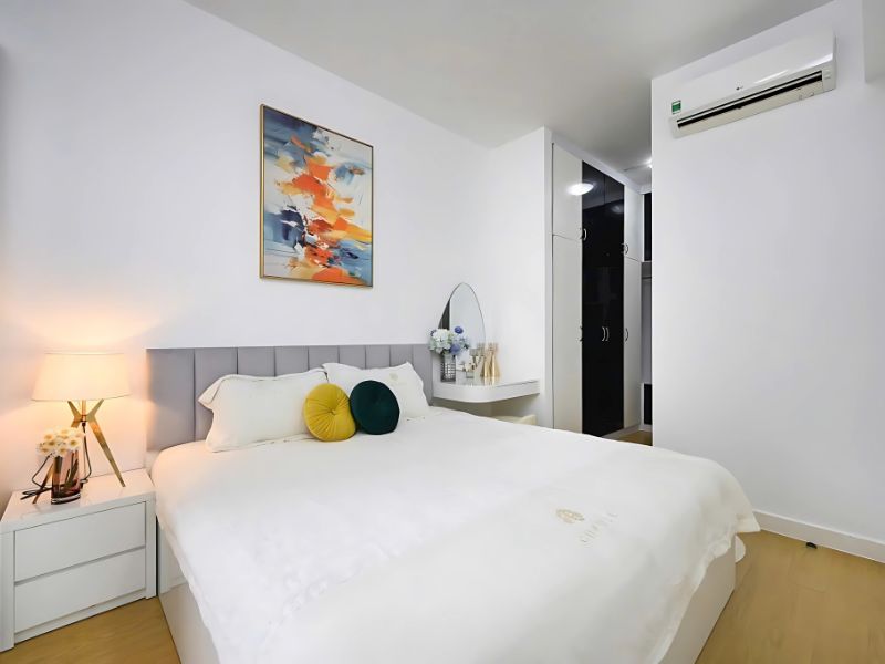 Phòng ngủ diện tích nhỏ: Nên chọn đèn có thiết kế chân mảnh, gam màu sáng hoặc trung tính để giúp không gian rộng rãi, thoáng đãng hơn.