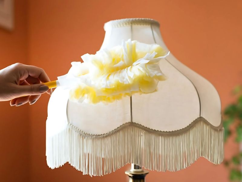 Chụp đèn bám bụi lâu ngày sẽ làm ánh sáng bị mờ, đổi màu hoặc giảm độ sáng đáng kể. Vì vậy, bạn nên vệ sinh chụp đèn định kỳ bằng khăn mềm hoặc chổi lông, tránh dùng nước nếu chất liệu không chịu ẩm. Với đèn chụp vải, có thể dùng máy hút bụi cầm tay ở chế độ nhẹ để làm sạch bề mặt.